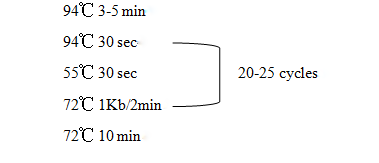 取5μl PCR产物,1% 琼脂糖凝胶电泳检测。如能看见目的条带,则已成功大半;注意即使未见条带或者见到目的条带外还有其它条带,也可以继续进行后续步骤。