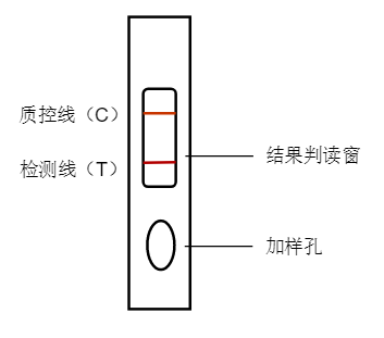 检测卡出现质控线(C)和检测线(T),都是红色条带,则为阳性结果;