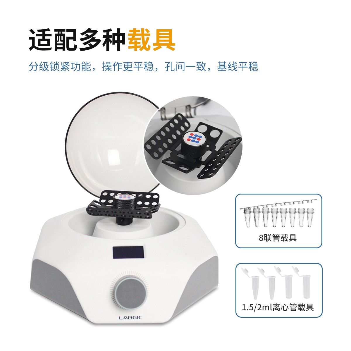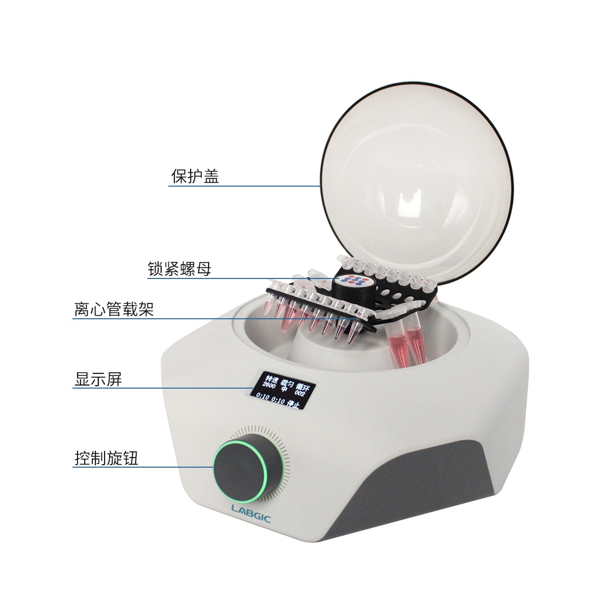 外观精美、钻切设计、浑然天成、分级锁紧、操作平稳、小巧便携、一体托盘设计、孔间一致、基线平稳;复合旋钮、智能光环、一键解锁离心/混匀、降噪音运行、偏振停机、从容可靠、感应控制、开盖保护、智能新体验。